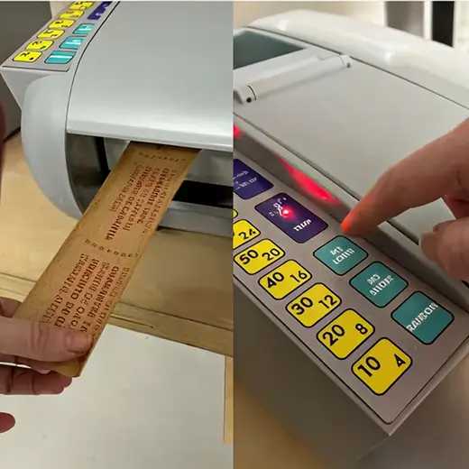 The FC-G82 semi-automatic Kraft paper tape dispenser, works according to the so - called "wet process", where the adhesive layer on the tape is moistened with water upon application, creating sufficient adhesive power for closing boxes. Different type and sizes of paper tape can be processed for different applications. In addition to standard tapes, a board variation of reinforced tape types are available, for HD applications on heavy and large boxes. All tapes can be printed.