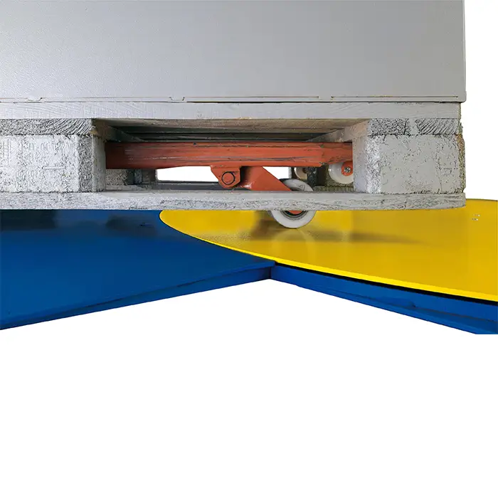 Each machine in this Low Turntable series comes standard with 1 ramp. Depending on the work situation, it can be attached to the floor frame in one of 3 positions; front, left or right. It is easy to expand with 1 or 2 additional ramps, to load the turntable from two or three sides. Turntable and ramps are provided with a non-slip coating.